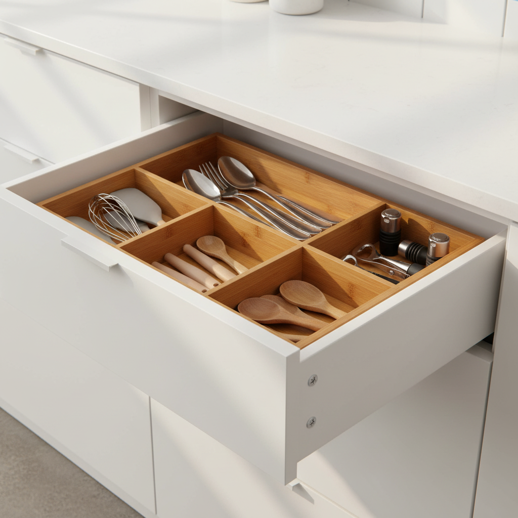 Bamboo Desk Organizer with 4 Compartments — Desktop Bamboo Tray for Home Office Workspace Kitchen Countertop — Desk Storage Organizer