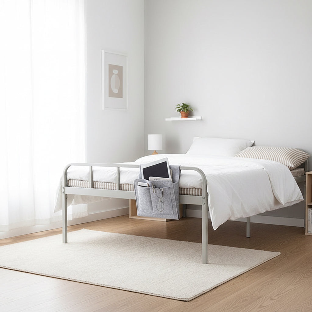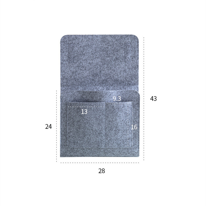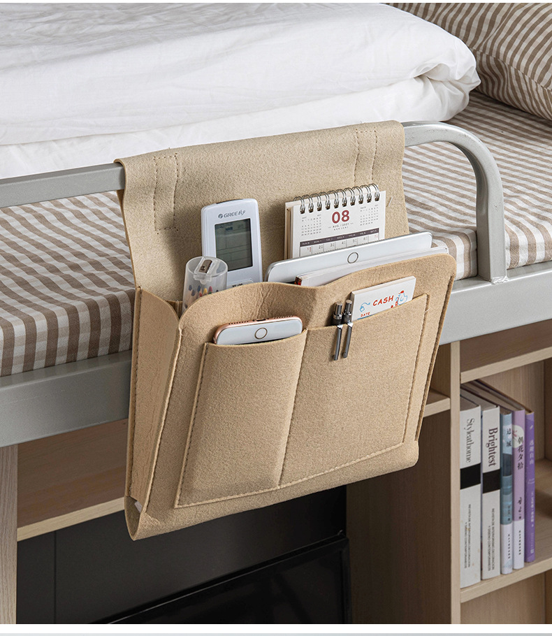 Bedside Hanging Bag Organizer — Phone Remote Book Storage Caddy for Bed Frame — Felt Bedside Pocket Organizer Beige Grey